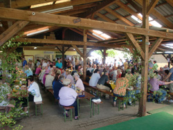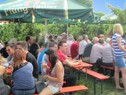 öffnet die Tore für ihre Gäste aus Karben und Umgebung. Zwischen den manchmal noch blühenden Apfelbaum-reihen sitzen Hunderte von Besuchern und lassen es sich bei hausgemachtem